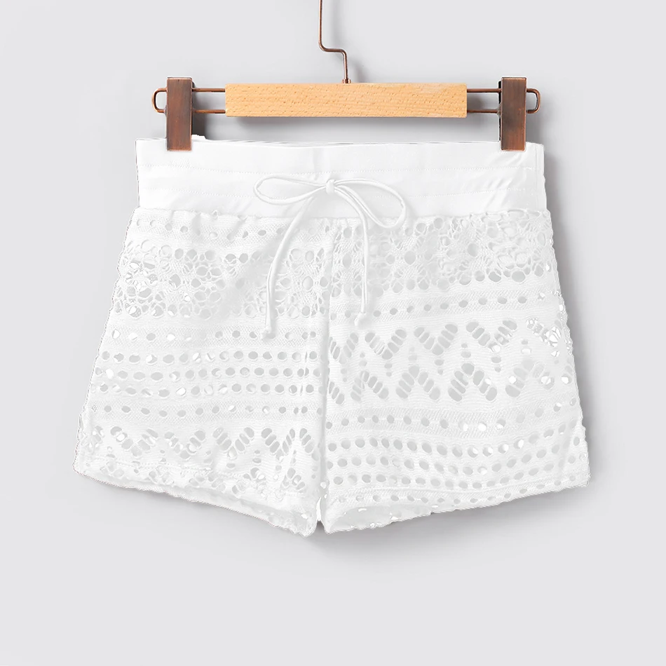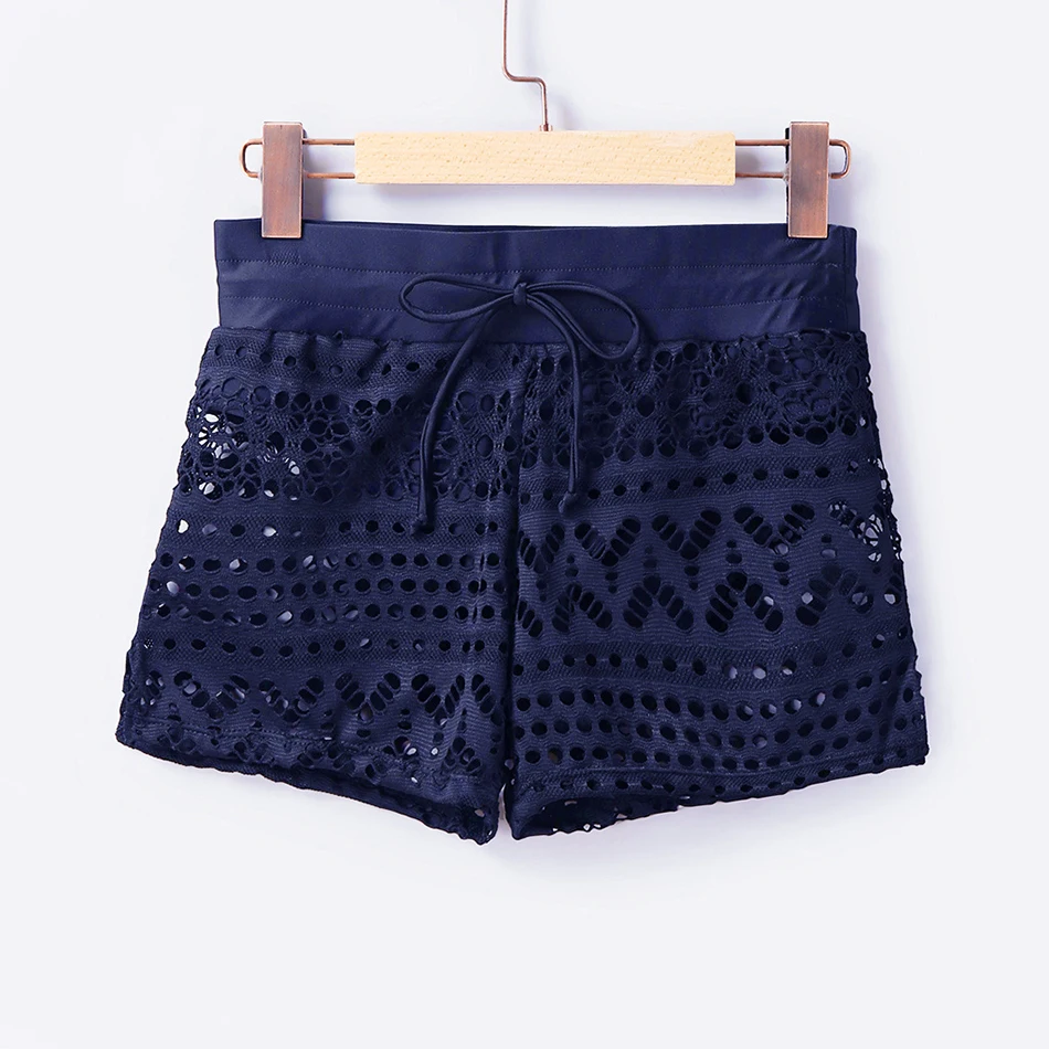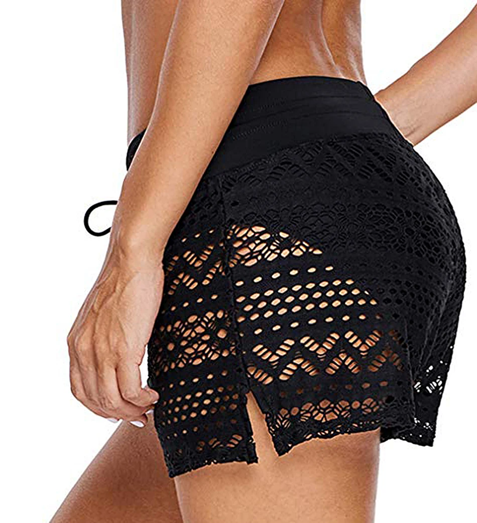 BLESSKISSS Lace Crochet Swim Shorts For Women Sexy Mesh Plus Size Swimsuit Swimwear Bikini Bottoms Cover Up Skirt Beach Wear